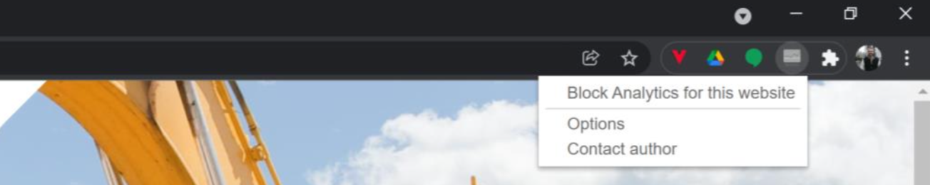 Ga naar de website waarvan je de analytics wilt blokkeren en druk op het grijze incoontje van de Analytics Blocker. Druk op Block Analytics fort his website.